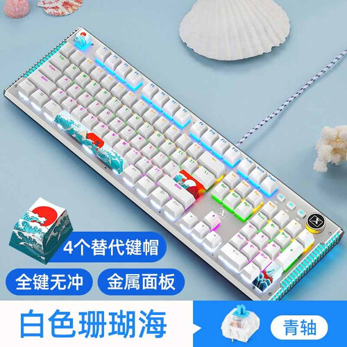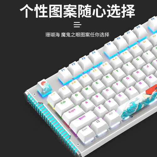 30多种灯效,满足你的不同需求。104键全键无冲突,准确响应你的敲击。段落感机械轴体,敲击寿命约6000万次。