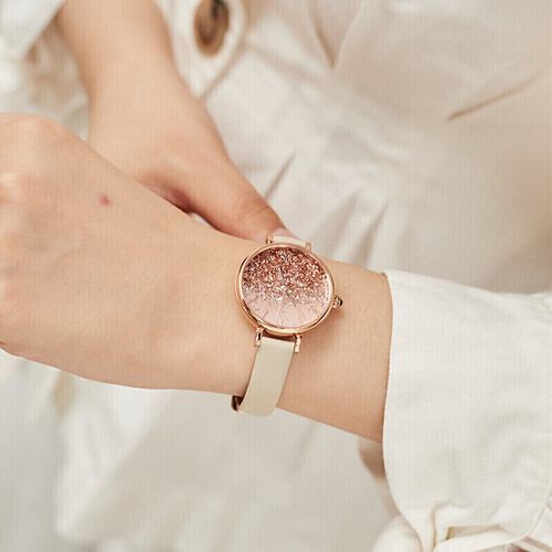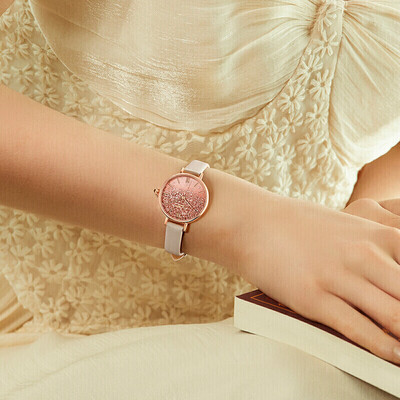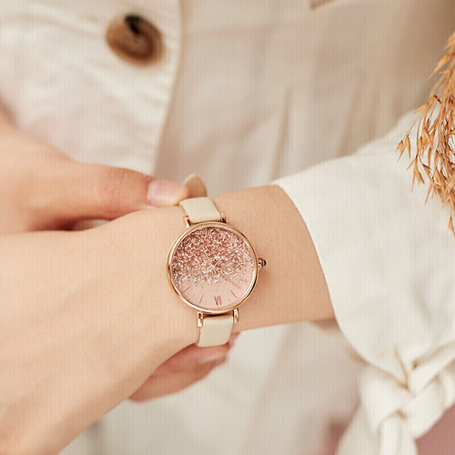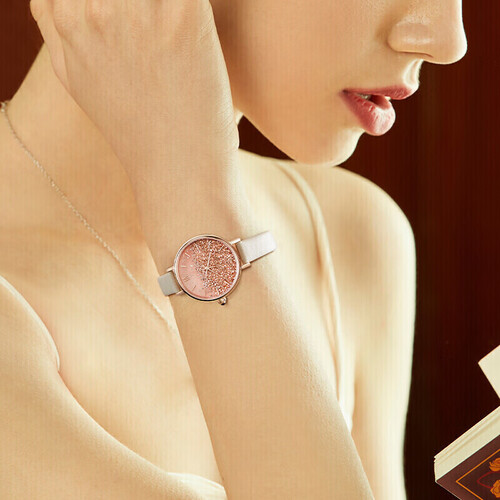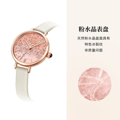 采用高硬度黑玛瑙表冠,散发迷人色泽。精选优质小牛皮表带,清新粉色设计,时尚美观,经久耐用。内置进口石英机芯,性能稳定。