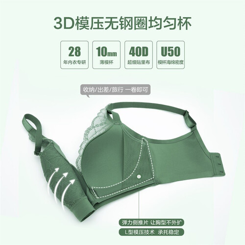 点缀蕾丝设计,彰显出柔美气质,营造出温柔大方的格调。具备收副乳的设计,防止胸部塌陷。