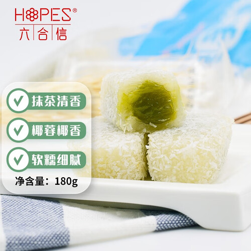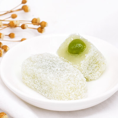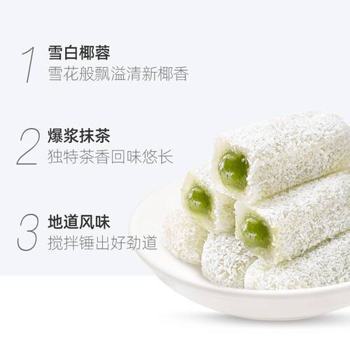 这款麻薯外裹的水磨糯米,软糯弹滑,清淡可口,具有淡浓的抺茶味,吃起来冰凉冰凉的,爽口十足。