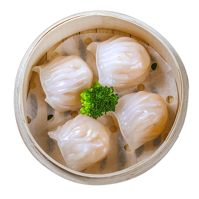 选自优质虾源,带来地道美味。虾饺外观晶莹剔透,白里透红,内含大虾仁段,面皮劲道,爽口不腻,香气扑鼻,蕴含满满广式风味。