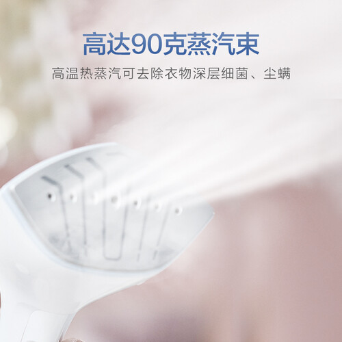 持续饱和的热蒸汽,可以快速穿透衣物,轻松除螨除菌,呵护家人的穿衣健康。自动温控烫头,避免烫伤面料。