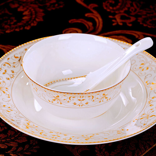 特别加动物的骨炭为基本原料,然后经过高温素烧和低温釉烧,方能成就其清澈透光质感。金色描边工艺,尽显高雅。