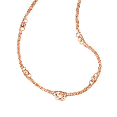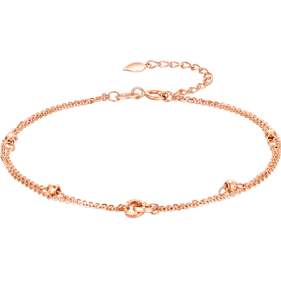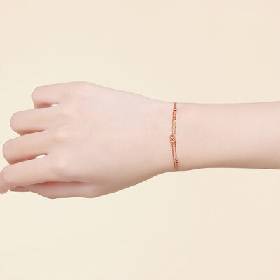 玫瑰金的质地,不容易出现褪色或者是生锈的现象,衬托出白皙的肌肤。并且环环相扣,结构紧密,质量很不错。