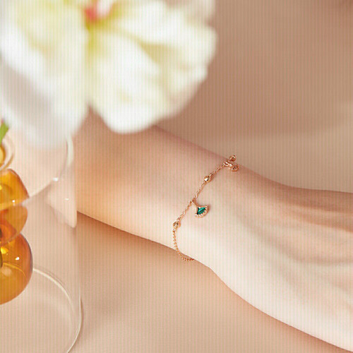 六福珠宝 甜美银杏K金手链