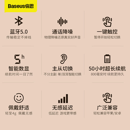 倍思 半入耳式真无线蓝牙耳机