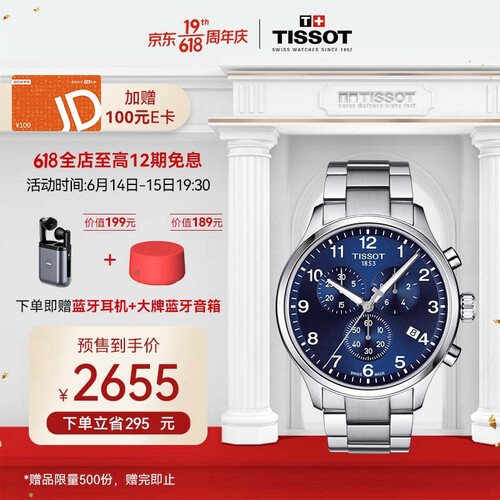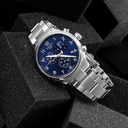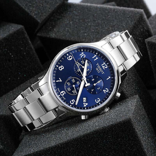 天梭蓝盘钢带手表