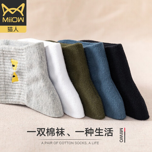猫人中筒吸汗休闲棉袜