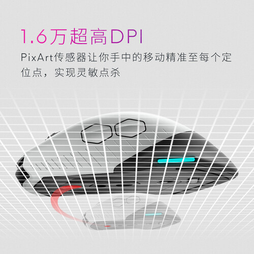 有线、无线双模切换,16000超高DPI,提升操作手感,握感舒适。RGB灯效,可以自定义专属光芒。