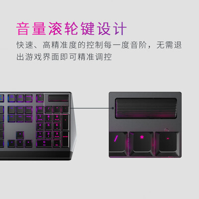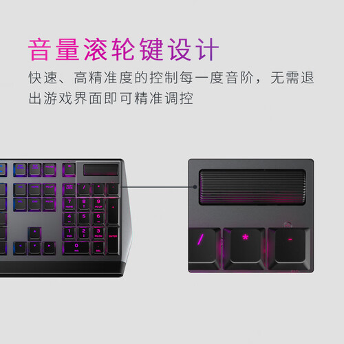 采用樱桃矮红轴,带来纤薄的按键,提高敲击响应速度。单键RGB灯光,个性定制你的喜好,属于你的炫彩效果。