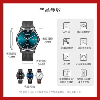 表壳采用316精钢材质,质地坚硬耐磨,抗腐蚀不生锈,佩戴历久如新。罗马时符和大三针设设计,时尚佩戴读时清晰。
