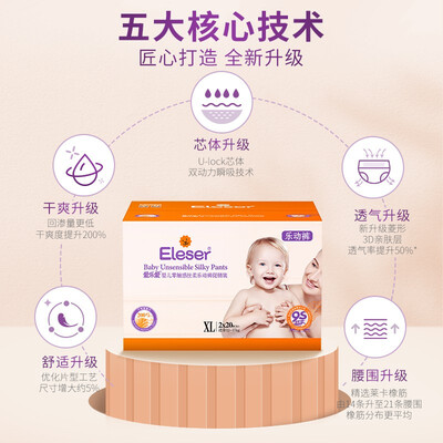 载入双动力瞬吸技术,能牢锁尿液不回渗,尿量再多也不怕。细腻纤维打造,如丝绸般触感,初生婴儿也适用。