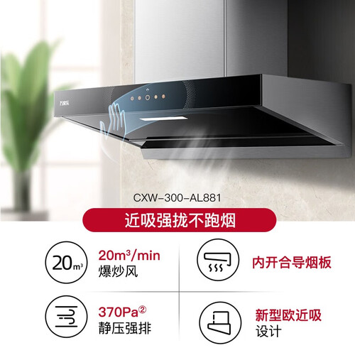 3分钟延时净烟模式,方便把菜的余味吸净,保证环境的清新无味。配合全钢化玻璃面板,便于清洁,保持面板持久新颖。