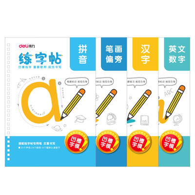加深的立体凹槽字模,字体清晰,笔尖运行流畅,一笔一划规范引导孩子写字。加厚硬卡材质内页,可反复使用,不易破损。