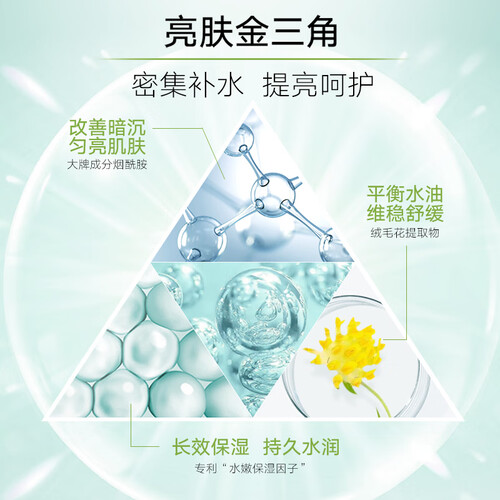 以玻尿酸和烟酰胺为核心,快速补水能力和长效锁水能力都不错。日常使用能有效改善肤质,调节水油平衡。