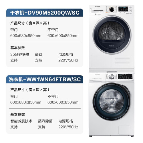 三星 衣干即停不过烘洗烘套装