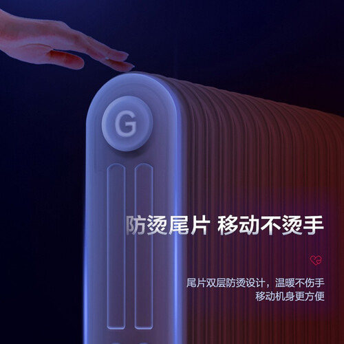 内设高效双管发热,有效减轻单管加热负荷,并搭载2200W大功率,速享温暖。采用尾片双层防烫设计,温暖不伤手移动方便。