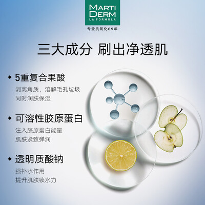 蕴含复合果酸、可溶性胶原蛋白、透明质酸钠三大黄金成分,深层排浊,去角质改善闭口黑头,深层滋润修护肌底,使肌肤柔滑紧实。