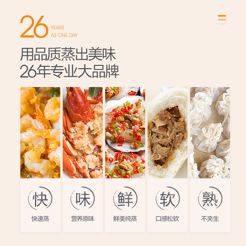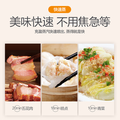 拥有下沉式蒸汽加热盘,容纳更多美食,使用更加方便。蒸汽3D立体环绕食材,高温快速穿透食物,从此拒绝夹生。