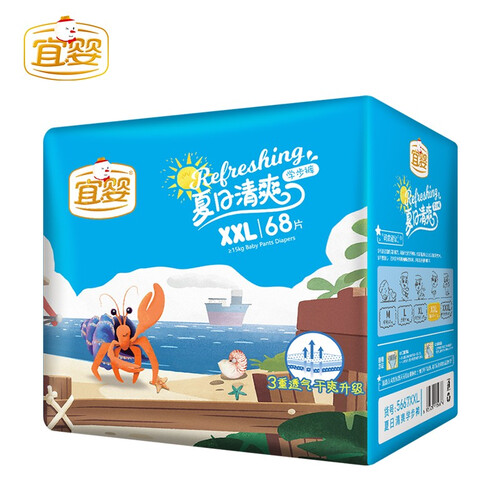 采用这款拉拉裤采用APS复合吸收芯体,不起坨。不反渗,透气性好,让宝宝享受舒柔干爽。