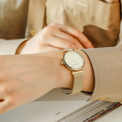 琉璃金色调的运用,富有细腻亮丽的光泽,彰显出华丽轻奢的质感,佩戴手上更显时髦大气范。编织表带,佩戴亲肤贴合。