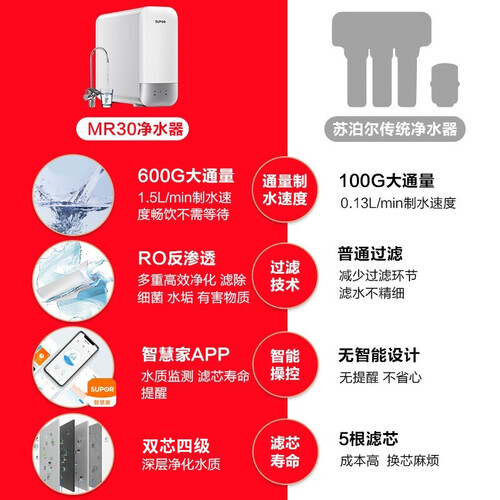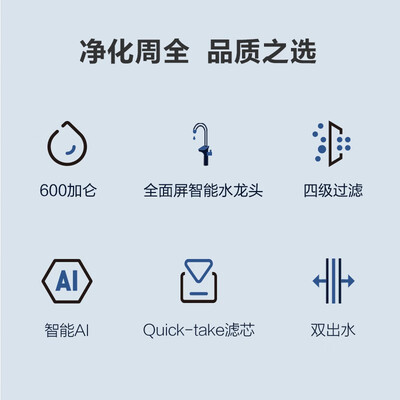 采用四级过滤技术,能够过滤水中的有害物质,保证出水干净健康。拥有600G澎湃动力,加快出水的速度,饮水无需等待。