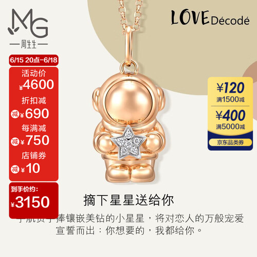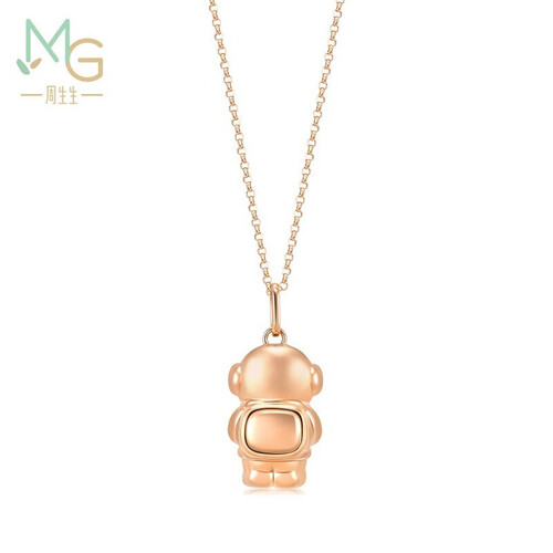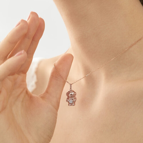18K红色黄金制成的太空人捧星造型,新奇别致,趣味十足,纹路清晰细腻,细节处理十分巧妙,富有质感。镶嵌钻石,工艺精湛。