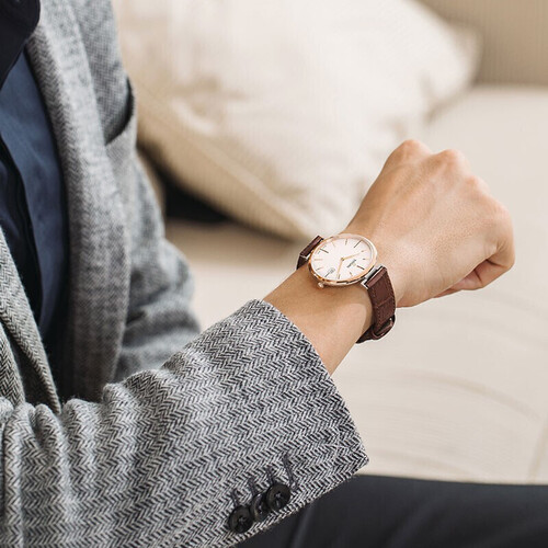流畅线性表壳,让整体质感十足,而且佩戴起来更加优雅舒适。防水深度高达50米,无论是泡澡还有游泳都可以放心佩戴。