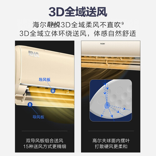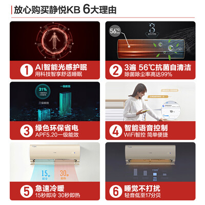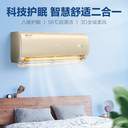 具有睡前护航系统,根据室内环境调节温度,打造更好的睡眠环境。采用双层大导板设计,出风口大,升温或降温速度提升。