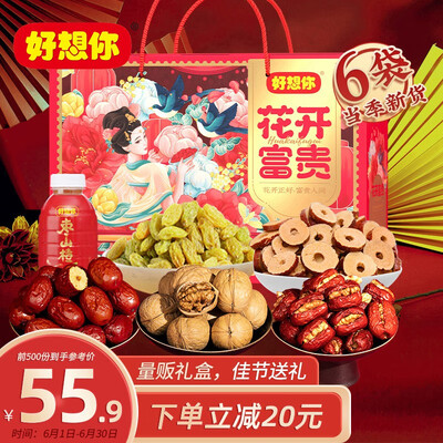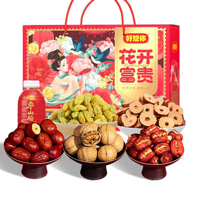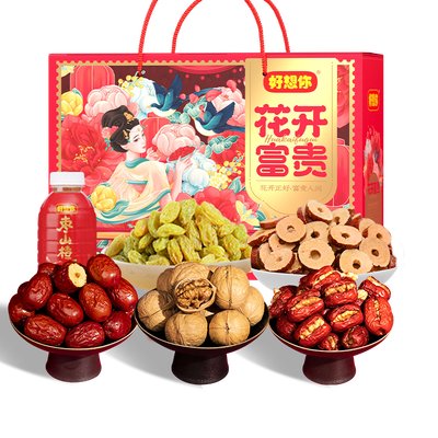 富含红枣、灰枣、核桃与葡萄干等五种干果,多重美味甄选,营养均衡丰富。大礼盒包装,颜色喜庆,适用于逢年过节赠送长辈。