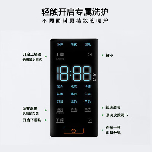 更大的大容量,一次可清洗更多件衣物,节省你的洗衣时间。这款洗衣机采用多重降噪设计,生活安心不打扰。