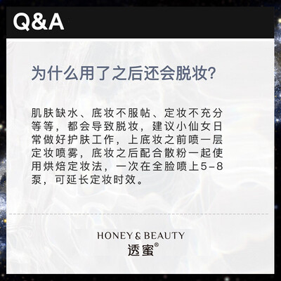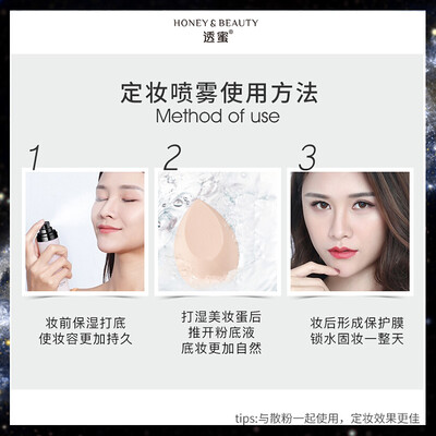 快速成膜,清爽补水的爽肤水,水雾粒子定妆不留痕,可以有效补水保湿,滋养干燥肌肤,定妆的同时更养肤。
