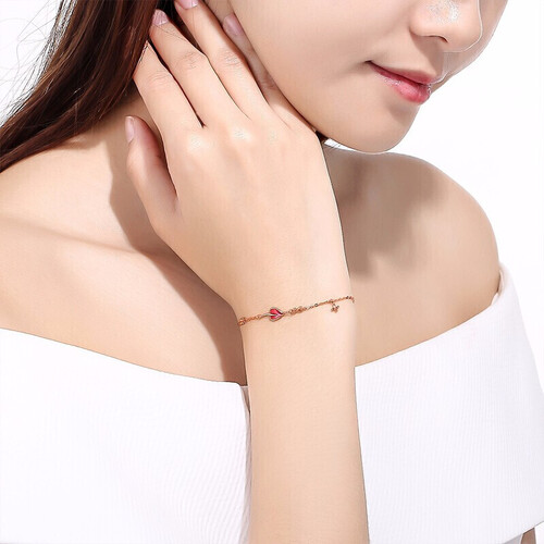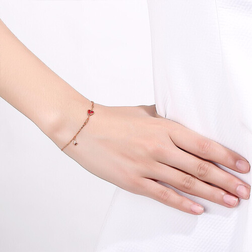 整体精选18K金材质打造,亲肤不易敏,散发温暖华丽的光泽感。心形红色珐琅,可爱灵动,为穿搭注入甜蜜气息。
