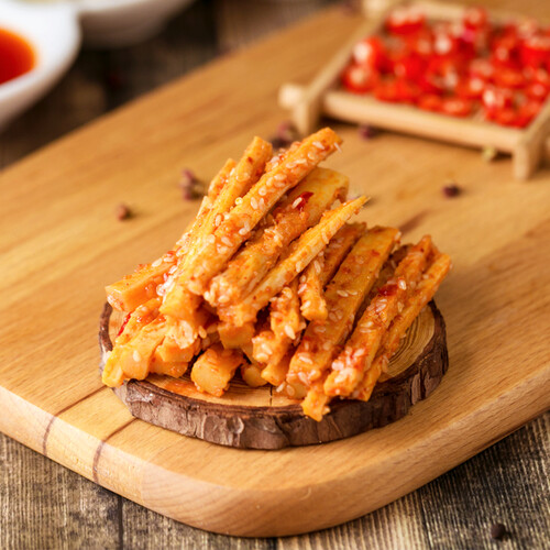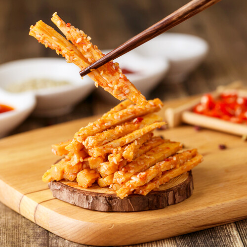 选用牛背主大筋为原料,口感劲道,好吃耐嚼。并加入芝麻、孜然等调料腌制,保证每根牛板筋都能充分入味,满足你挑剔的味蕾需求。