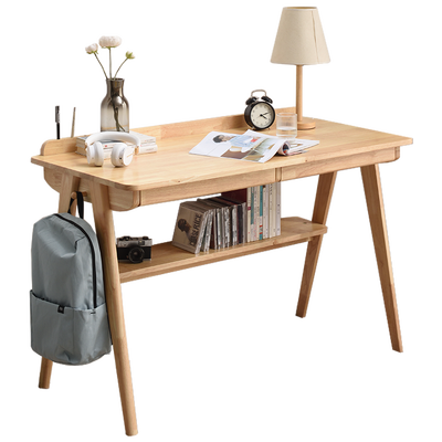 环保实木材质,耐脏易清洁,长久使用也不用担心脏污。桌底设有升级置物架,可以放置书籍等物品,节省空间更耐用。
