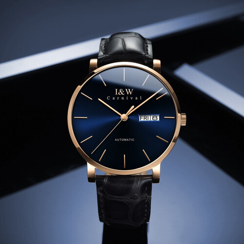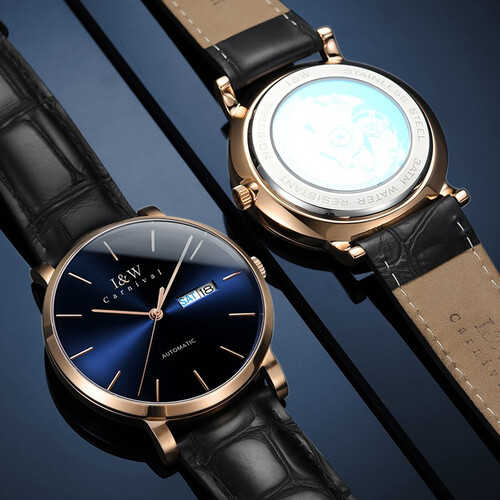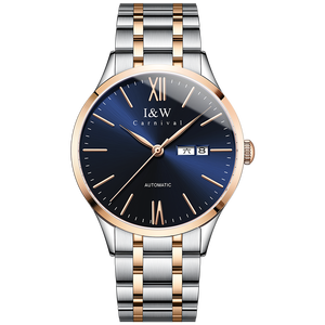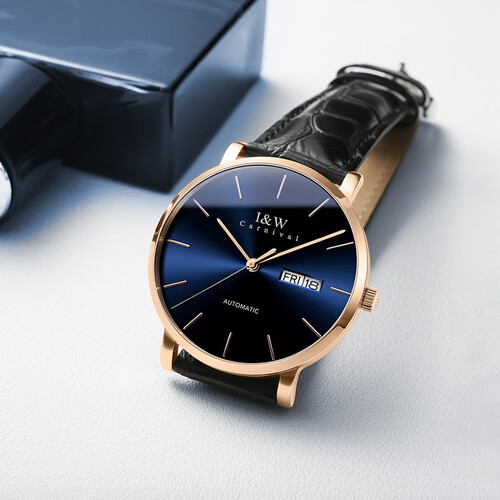 双日历显示设计,可准确显示日期和星期,实用性强;表壳采用PVD镀色工艺,不易褪色,经久耐用。