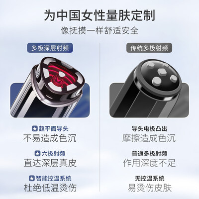 多极深层射频,能有效去皱淡细纹,使肌肤更光滑Q弹。四重光电能量,强劲的渗透力,让肌肤焕发新光彩。