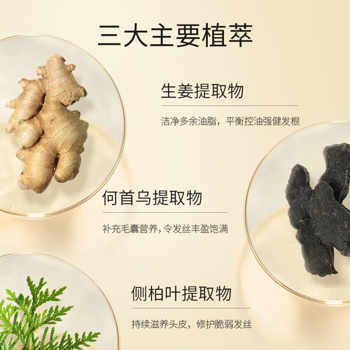 采用姜根提取物,能够吸收头皮多余油脂,实现高效控油;ZPT抗屑因子,能够强力去屑的同时,也抑制头皮屑的生长。