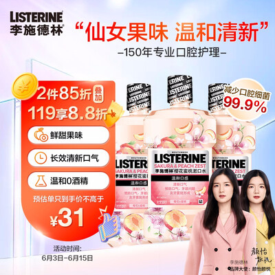 内含4种植物精油,专业针对口腔黏膜的细菌问题,持久呵护口腔健康,萃取薄荷精粹与樱花蜜桃香搭配,舒爽口感迷人芬芳。