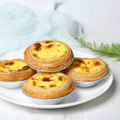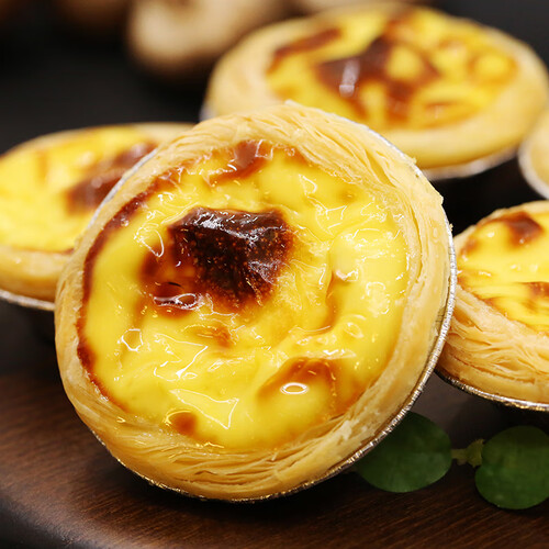 精心挑选优质的鸡蛋制作而成,蛋挞液奶香浓郁,吃起来口感醇厚细腻。烘烤出来的蛋挞呈金黄色,色泽鲜亮诱人。