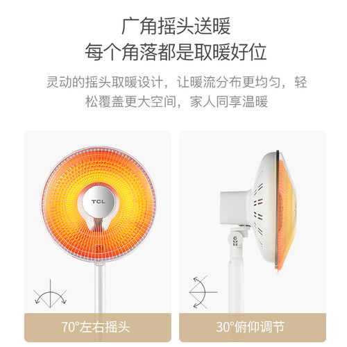 灵动摇头取暖设计,可增大取暖范围,自动进行转动机身。搭配台地两用设计,伸缩自由,桌上桌下都可以方便使用。