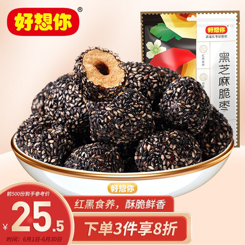 精选江西九江黑芝麻,提高脆枣醇香口感,美妙滋味让你长时无法遗忘。经过-25℃急速冷冻技术,锁住大枣鲜脆口感不流失。