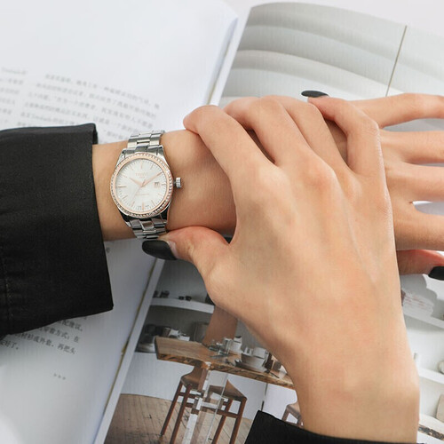 简洁刻度与日历的结合,不仅美观更方便,还能更全面地掌握时间;天梭品牌标识加以装饰,丰富细节亮点,提升辨识度。