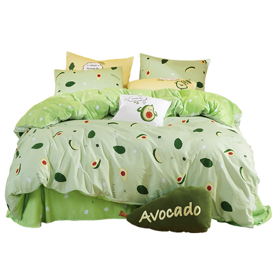 被面加入牛油果印花元素点缀,透露出小清新的格调,增添家居环境亮点,结合信封式的枕套,兼具美感与实用性。