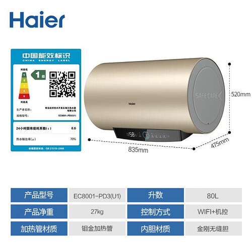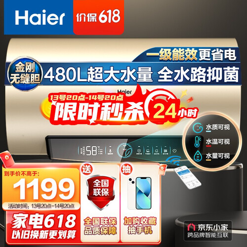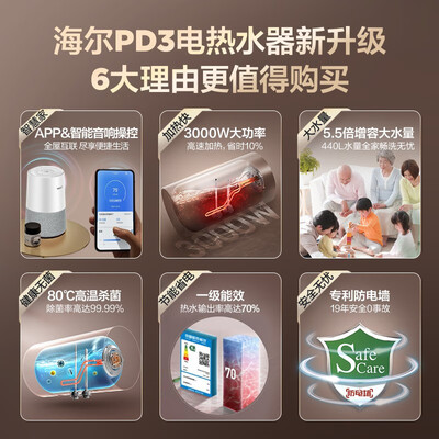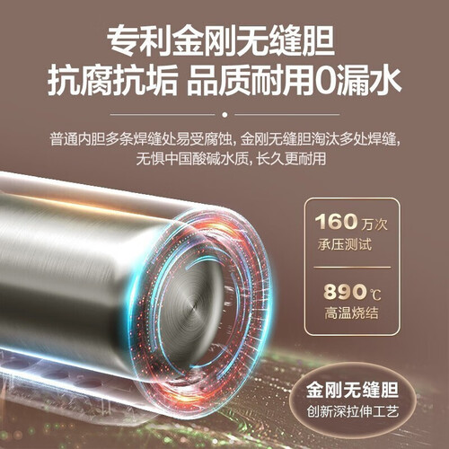 2200W大功率加热,烧水速度更快,沐浴无需久等。全新升级的钼金加热管,耐腐蚀性能提升了4倍,导热速度更快。
