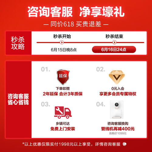 紧凑型机身设计,不占地方,适应各种厨下环境,大通量设计,出水速度快,满足全家饮用需求。