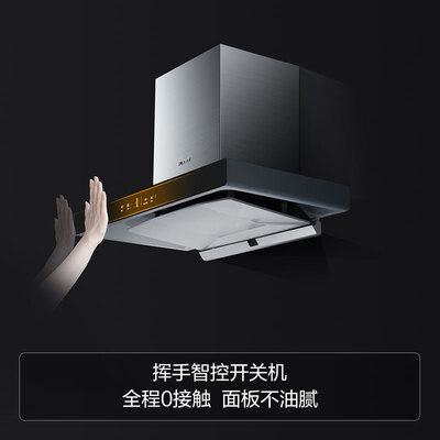 360°深腔设计,能有效封锁油烟,双灶开启也能有效拢吸油烟。挥手智能开关机设计,免去双手触控麻烦,挥手间就可调节风量。