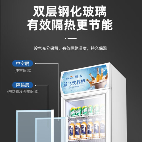 立式的设计,能够保证冰柜容量的同时节省占地空间。陈列式的设计,可以透过玻璃看到冰柜内部的情况。