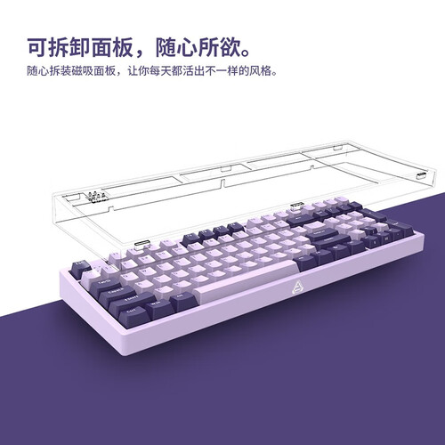 键盘采用分体式构造,磁吸式面板可自由拆装,使用场景更灵活多变。面板能根据喜好任意更换,打造属于自己的独特风格。