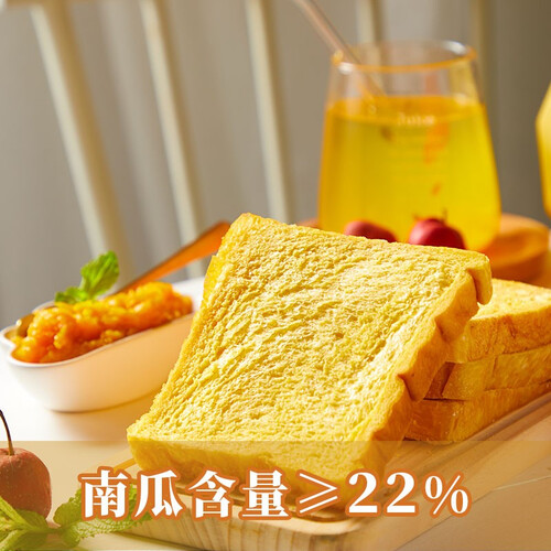 南瓜含量大于22%,带给你南瓜与麦香的双重味蕾享受。采用深发酵工艺,面包更蓬松柔软,既美味又营养。